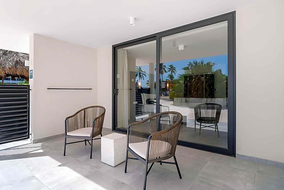 1 KING OCEANFRONT MOBILITY ACCESSIBLE RI SHWR, ALL INCLUSIVE HOTEL-36 SQM-MINIBAR-BALCONY, 42 INCH HD TV-COFFEE AND TEA KETTLE-ROOM SAFE
